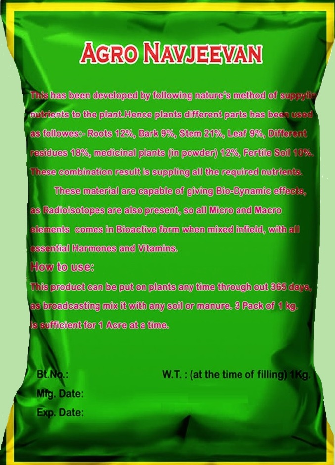 Environmental Impact: The Agro-Navjeevan are often derived from natural and sustainable sources, reducing environmental pollution and ecological impact. They have low toxicity levels and are generally safer for the environment. While Chemical fertilizers can contribute to nutrient runoff, water pollution, and ecological imbalances, leading to adverse effects on aquatic ecosystems and biodiversity.